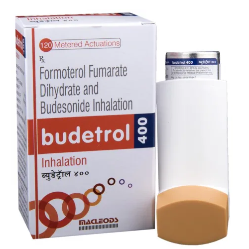 Budetrol 400 Inhaler is a prescription medication manufactured by Macleods Pharmaceuticals Pvt. Ltd., combining two active ingredients—Budesonide (400 mcg) and Formoterol (6 mcg)—to provide effective long-term management of asthma and chronic obstructive pulmonary disease (COPD) symptoms.