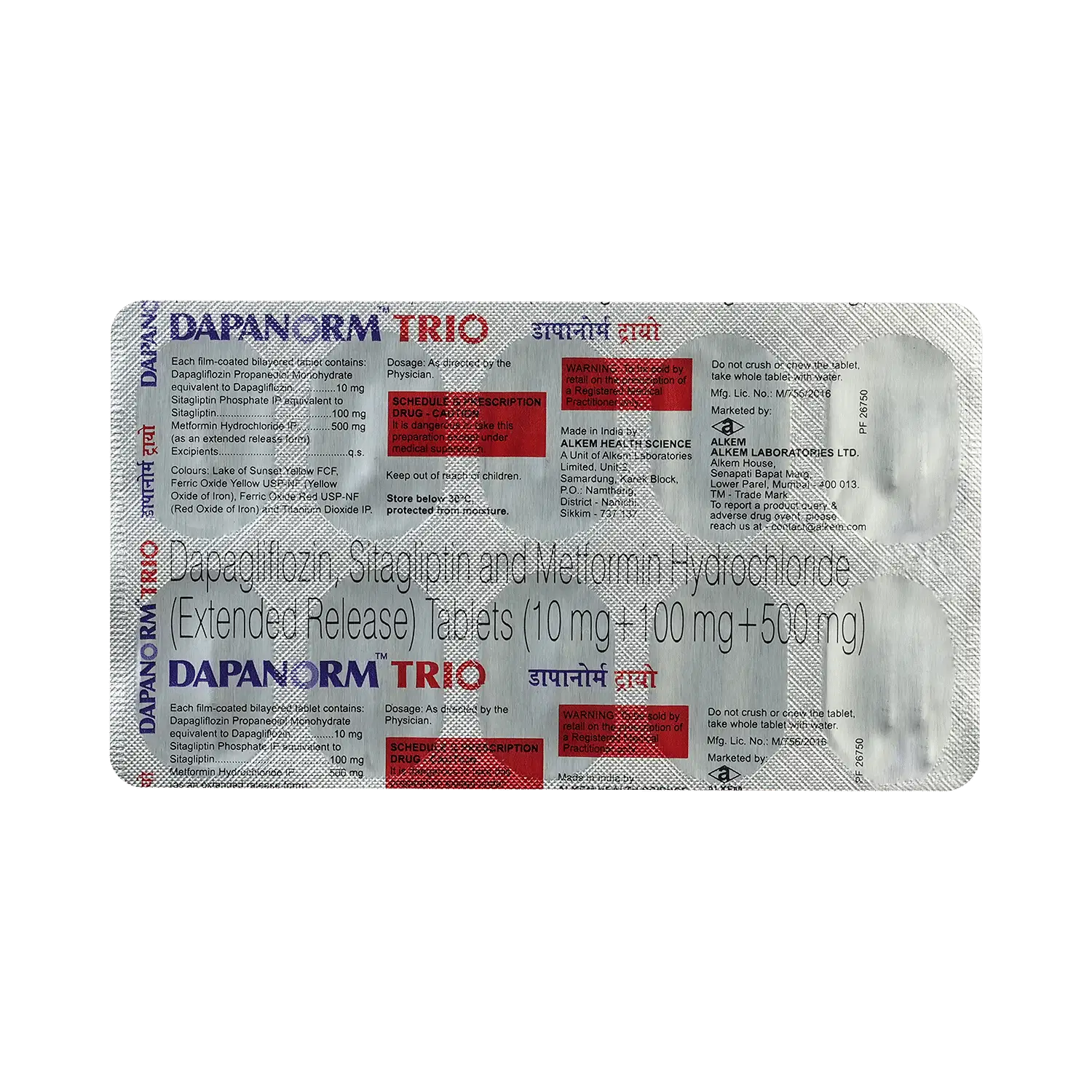 Dapagliflozin + Metformin + Sitagliptin is a triple combination oral anti-diabetic medication used to manage Type 2 Diabetes Mellitus in adults. It is prescribed when blood glucose levels are not adequately controlled with monotherapy or dual therapy. This formulation integrates three complementary mechanisms, providing comprehensive and long-lasting blood sugar control.