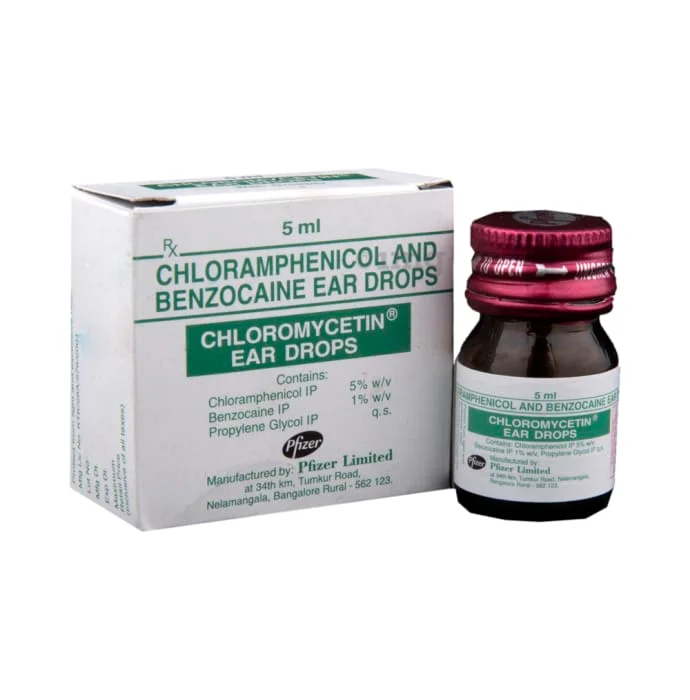 Benzocaine 1% + Chloramphenicol 5% ear drops are a combination medication designed to treat bacterial ear infections and provide symptomatic relief from ear pain. This formulation combines an antibiotic (Chloramphenicol) with a local anesthetic (Benzocaine) to address both the infection and associated discomfort.