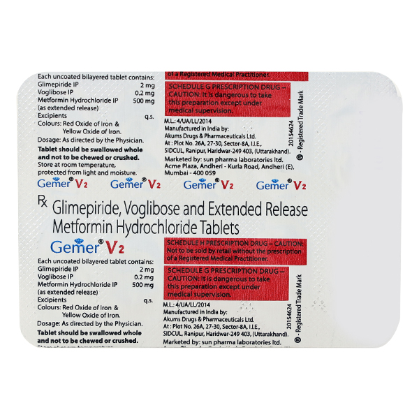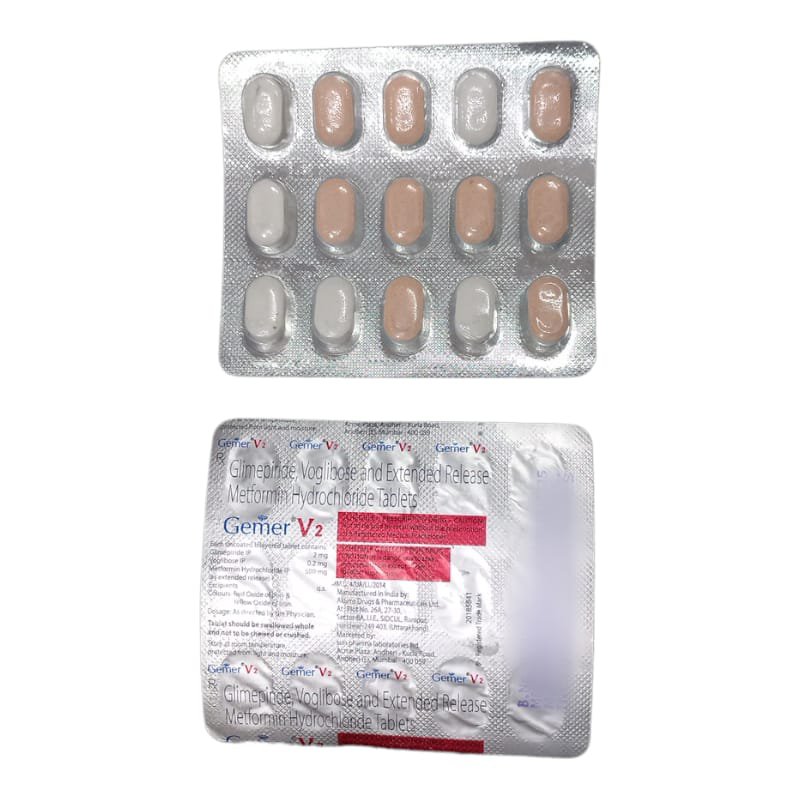 This fixed-dose combination of Glimepiride 2mg, Metformin 500mg, and Voglibose 0.2mg is a powerful oral anti-diabetic formulation used in the management of Type 2 Diabetes Mellitus (T2DM). It is specially formulated for patients whose blood glucose levels are not adequately controlled by dual therapy or lifestyle changes alone.
