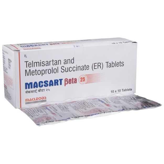Telmisartan 40mg + Metoprolol Succinate 25mg is a combination medication used primarily for the treatment of hypertension (high blood pressure) and associated cardiovascular risks. Telmisartan belongs to the class of angiotensin II receptor blockers (ARBs), while Metoprolol Succinate is a beta-blocker. Together, they help in lowering blood pressure, improving heart function, and reducing the risk of stroke, heart attack, and kidney problems.