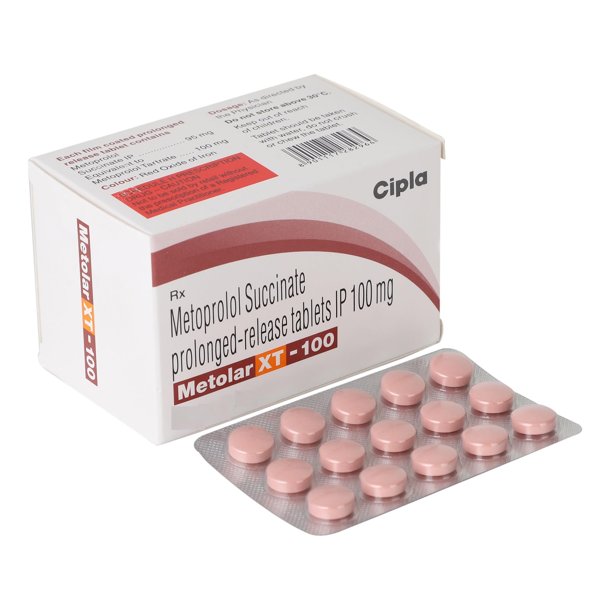 Metoprolol Succinate 100mg is an extended-release beta-blocker medication prescribed to manage cardiovascular conditions. It is the succinate salt form of metoprolol, designed for sustained action over 24 hours. It helps improve heart function, lower blood pressure, and reduce the risk of complications such as heart attacks or strokes.