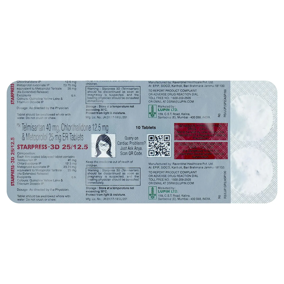 Chlorthalidone 12.5mg + Metoprolol Succinate 25mg + Telmisartan 40mg is a fixed-dose combination medication primarily prescribed for managing hypertension (high blood pressure). This combination leverages the synergistic effects of three distinct classes of antihypertensive agents:
